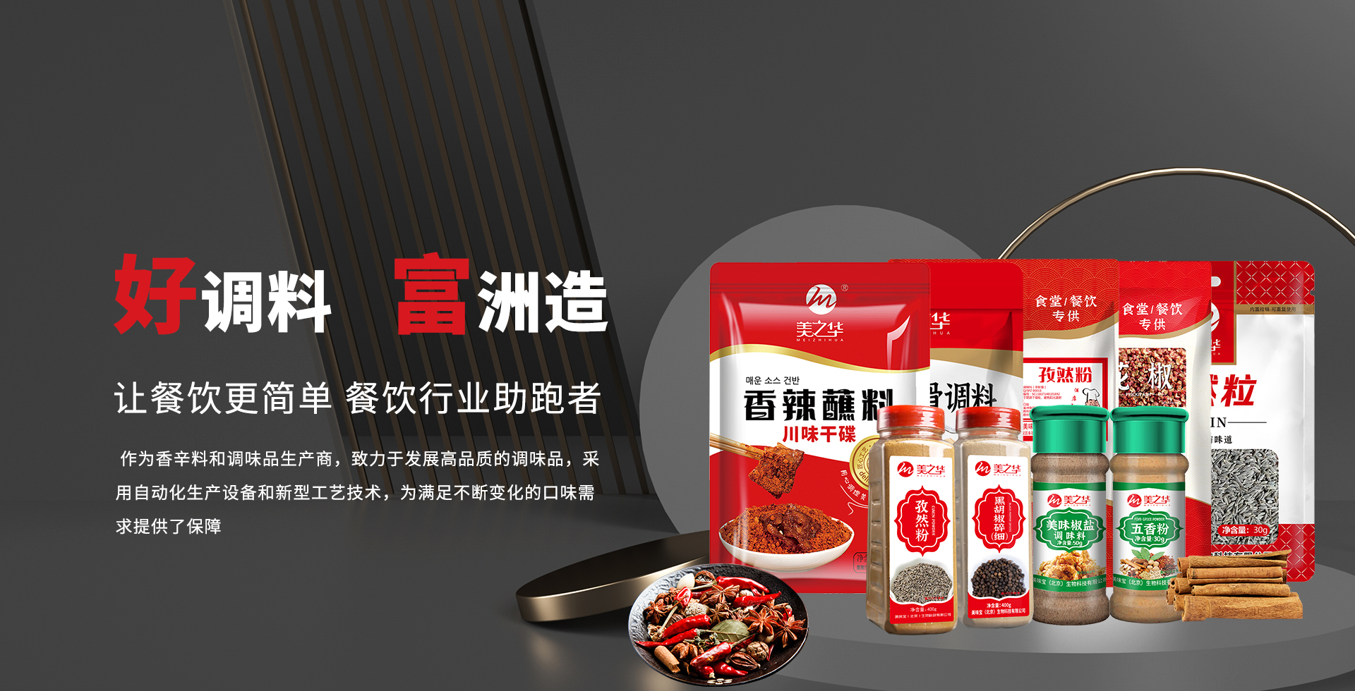 以香辛料粉、燒烤系列、復(fù)合調(diào)味醬系列、餐飲調(diào)味品代工等多個板塊滿足不同客戶需求。